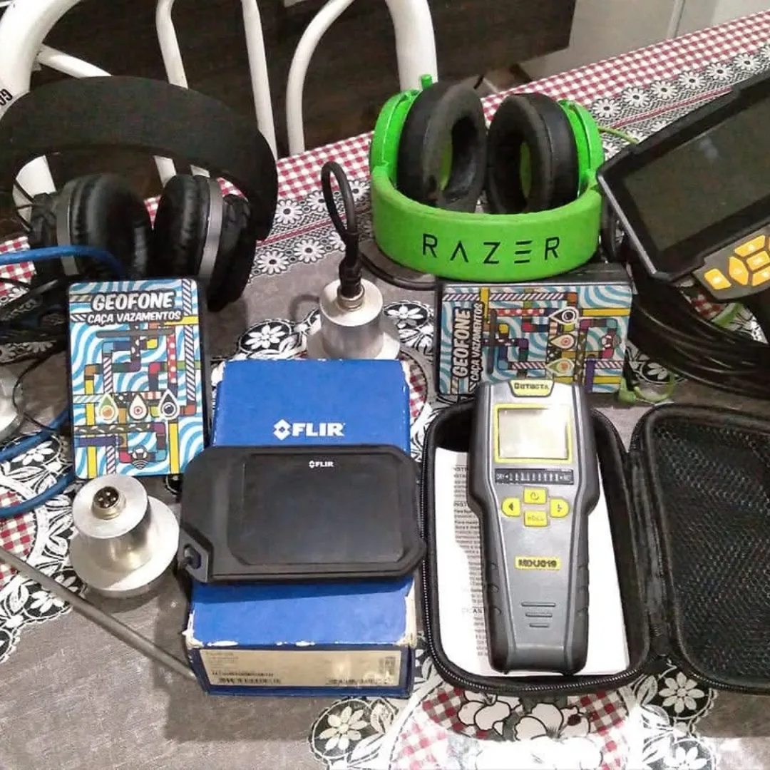Utilizamos equipamentos modernos como câmera termográfica, geofone eletrônico, medidor de umidade e pressurização para localizar o vazamento com precisão e sem quebra.